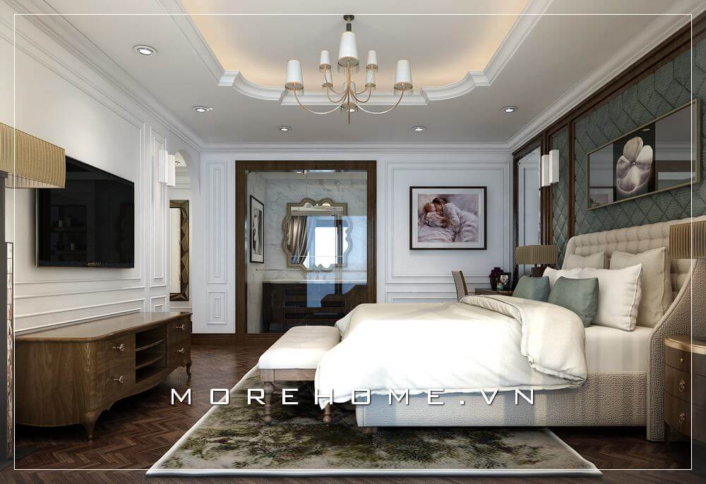 Thiết kế giường ngủ chung cư, biệt thự cao cấp phong cách tân cổ điển sang trọng, tinh tế