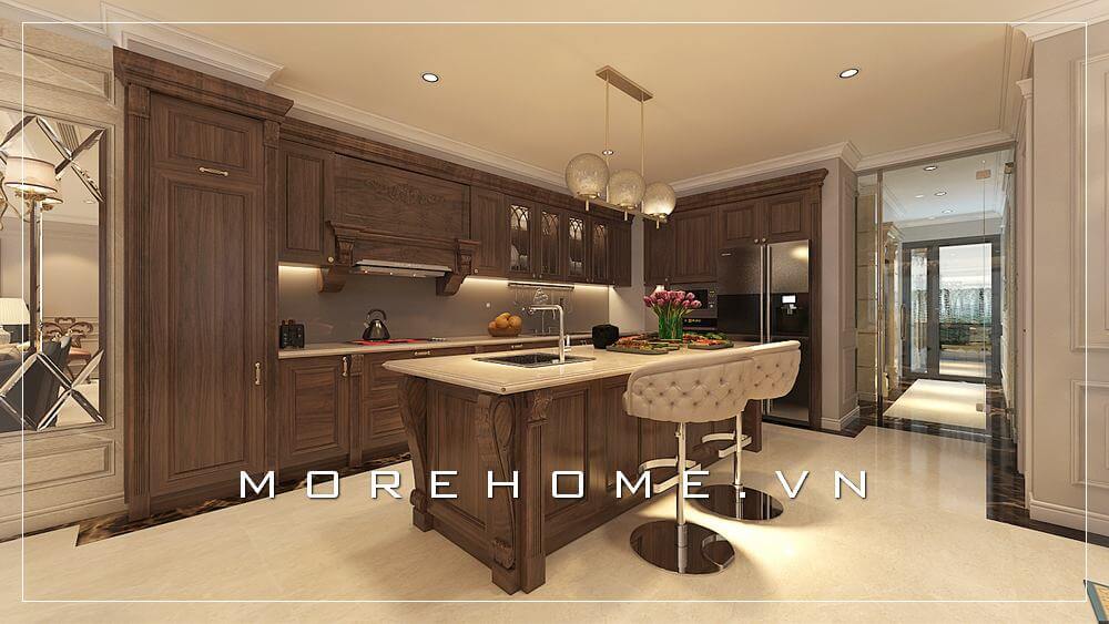Thiết kế nội thất phòng bếp biệt thự tân cổ điển sang trọng, tiện nghi và đẳng cấp
