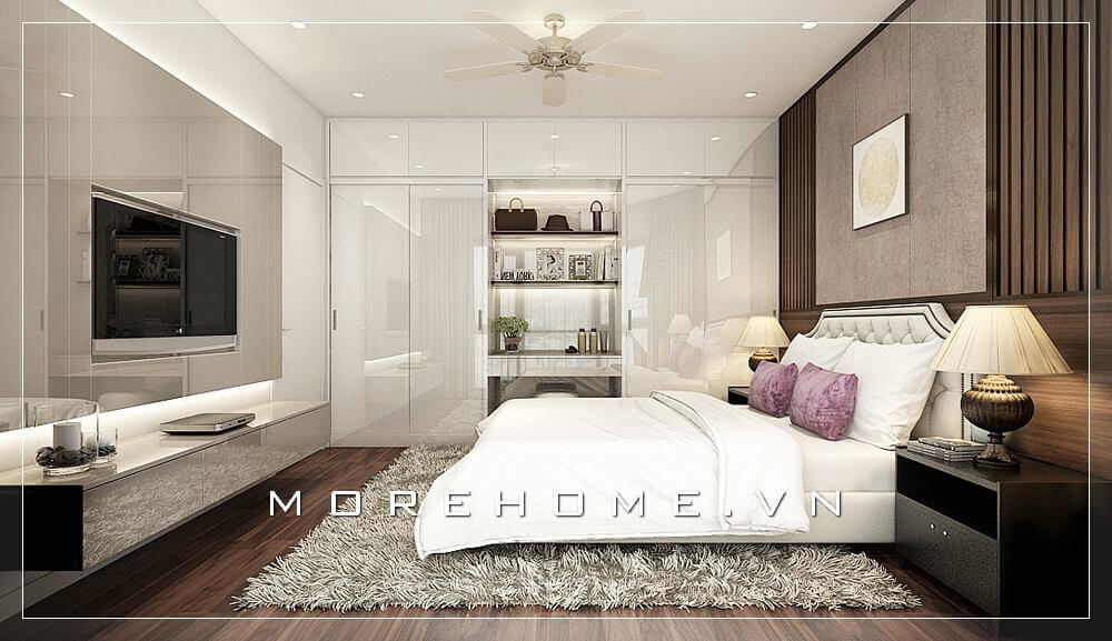 Gợi ý cho phòng ngủ chung cư cao cấp mẫu tủ quần áo màu trắng tinh tế và sang trọng