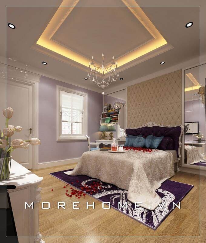 Thiết kế phòng ngủ chung cư tân cổ điển với màu sắc nhẹ nhàng mang đến cho không gian một màu sắc ấn tượng nhẹ nhàng mà không hề khô khan