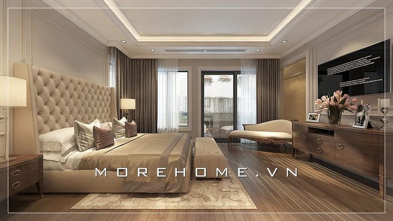 Thiết kế nội thất phòng ngủ tân cổ điển sang trọng, quý phái.