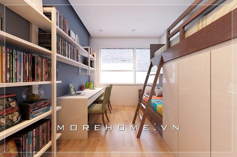 Nếu nhà bạn có đông trẻ con thì đừng bỏ qua mẫu thiết kế phòng ngủ này, chiếc giường tầng hiện đại sẽ giúp con vẫn có không gian nghỉ ngơi riêng tư, thoải mái hơn cả
