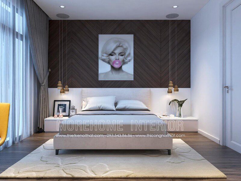 Giường ngủ chung cư hiện đại, được đặt chính giữa căn phòng mang lại cảm giác cân bằng và đảm bảo cho sự nghỉ ngơi được thoải mái hơn