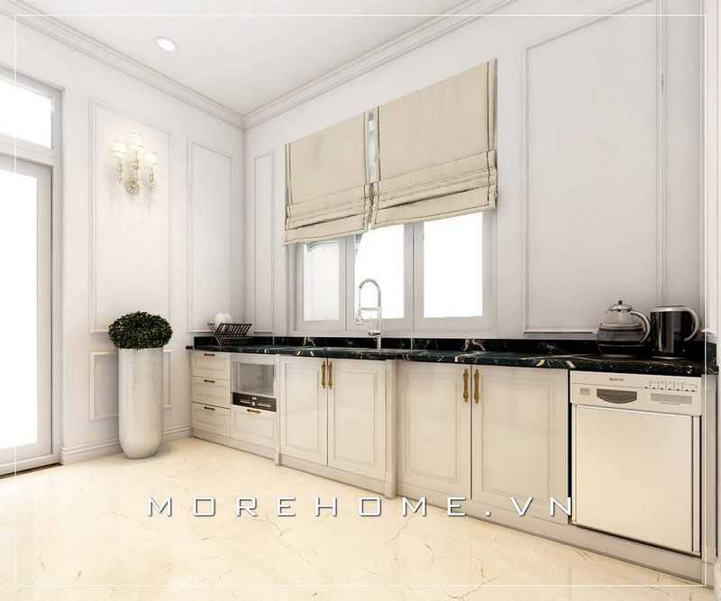 Thiết kế nội thất phòng bếp biệt thự tân cổ điển sang trọng và tiện nghi