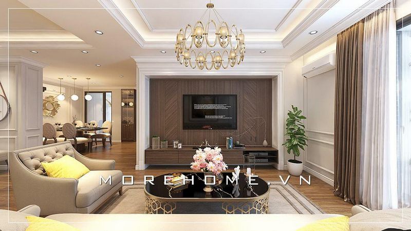 Thiết kế nội thất phòng khách chung cư phong cách tân cổ điển với tone màu sáng mang lại cho chúng ta cảm giác cơi nới về không gian và tạo độ thoáng cho căn phòng