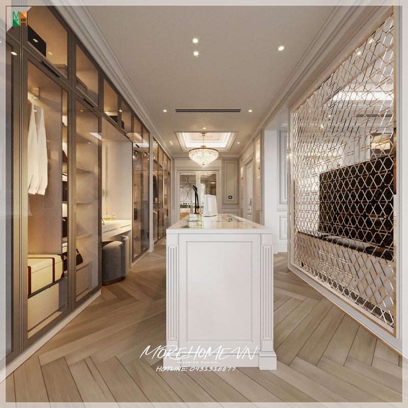 Ấn tượng với thiết kế đảo phụ kiện vừa tôn vẻ sang trọng tiện nghi và tiện lợi cho gia chủ.