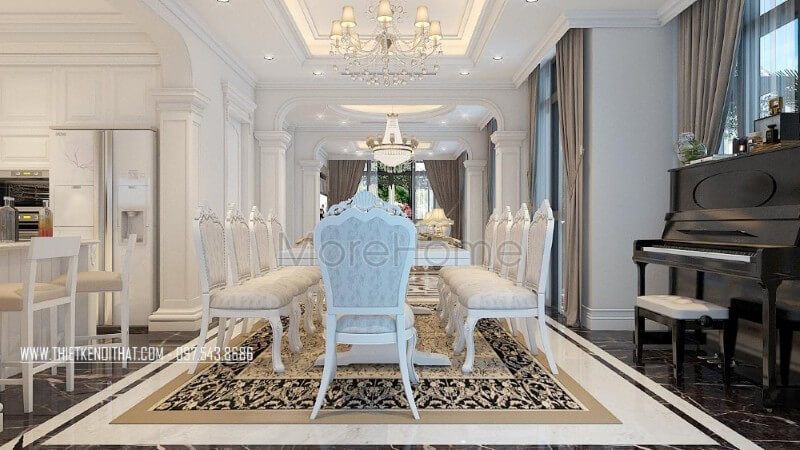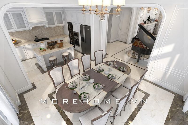 Bạn sẽ phải choáng ngợp với mẫu bàn ăn biệt thự sang trọng tạo điểm nhấn nổi bật cho không gian căn nhà