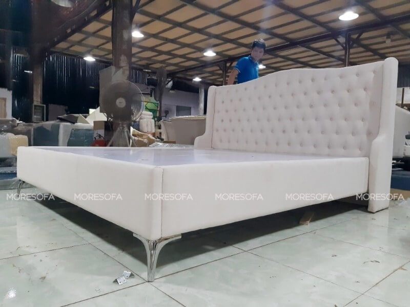 Mẫu giường ngủ cao cấp với thiết kế đơn giản đầu giường bọc nệm được ưa chuộng tại MoreHome