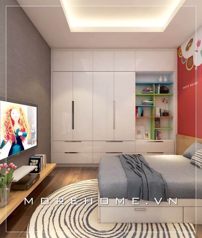 Tủ áo hiện đại kết hợp kệ tủ ti vi đầy trẻ trung phù hợp lựa chọn cho không gian phòng ngủ chung cư nhỏ