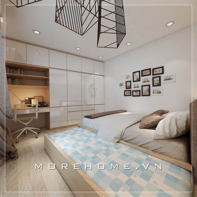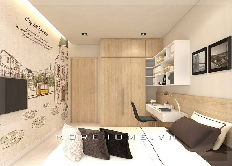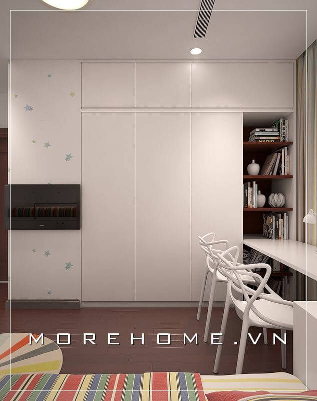 Thiết kế tủ áo hiện đại, đơn giản kết hợp với kệ sách, bàn học đem đến sự thoải mái, tiện nghi nhất