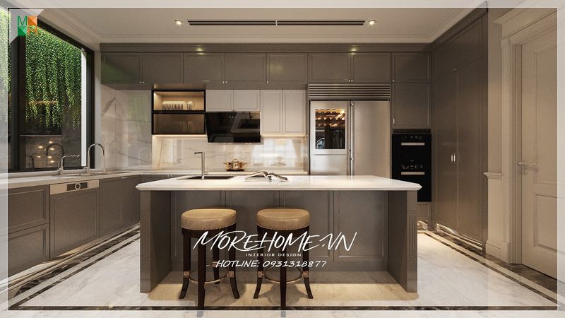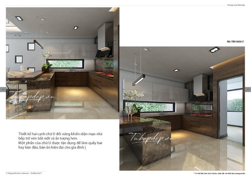 Thiết kế nội thất bếp hiện đại, bếp chữ u rất hiện đại và đẹp dành cho biệt thự, nhà phố.