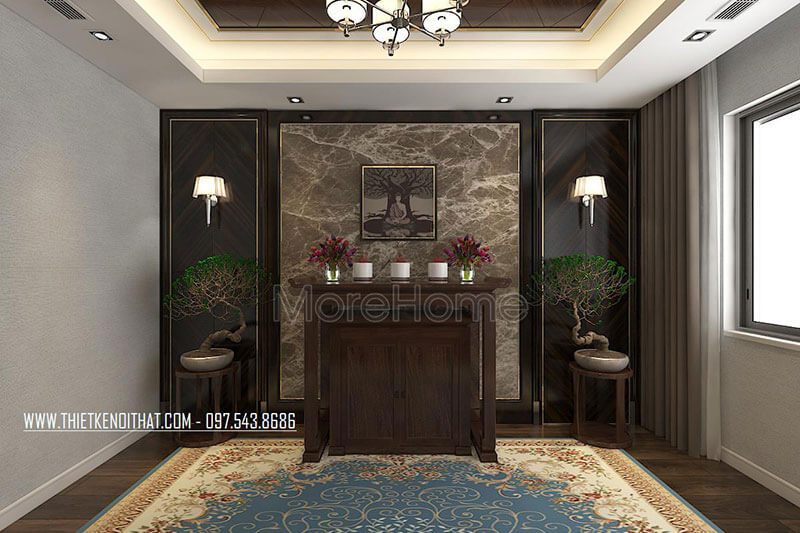 Mẫu tủ thờ hiện đại với đường nét chạm khắc tỉ mỉ cho nhà phốbiệt thự