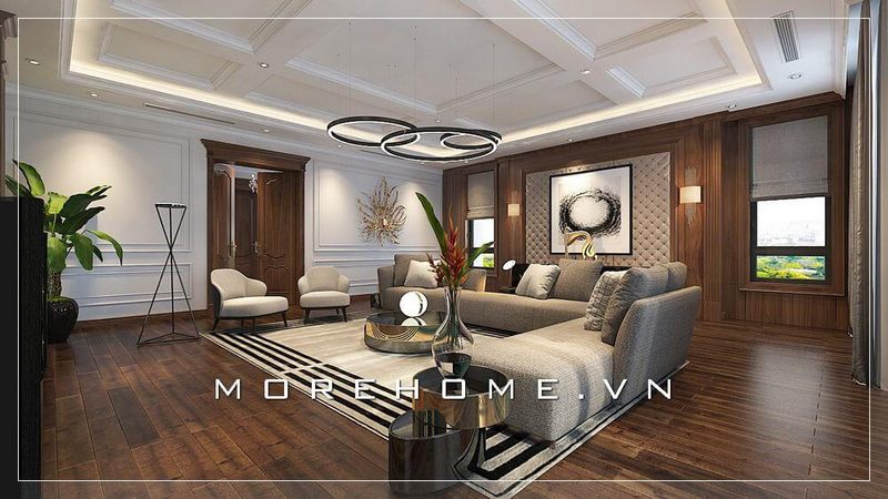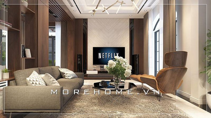 Sofa phòng khách hiện đại tone màu phù hợp với thiết kế tổng thể của căn phòng