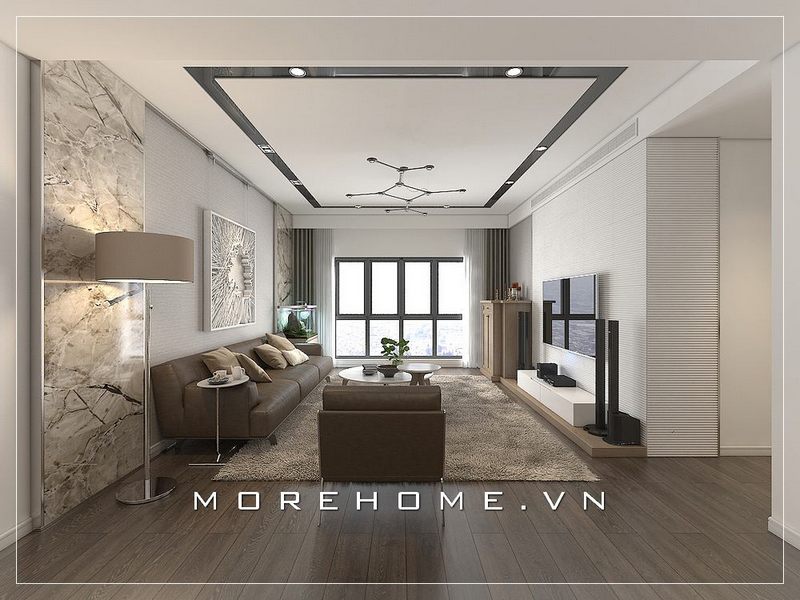 Tối ưu không gian phòng khách căn hộ chung cư với bộ sofa góc phong cách hiện đại thoáng đãng kết hợp chân sắt đầy tinh tế cho phòng khách căn hộ chung cư.