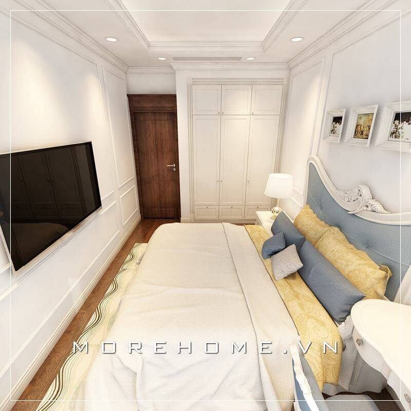 Phòng ngủ chung cư Vinhomes Gardenia kết hợp tủ áo vừa âm tường, vừa cánh lùa, tận dụng tối đa không gian