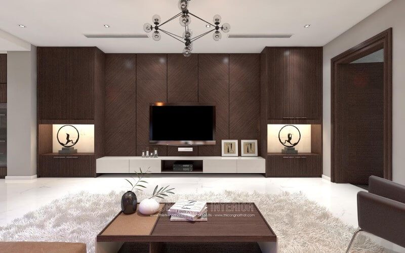 Mẫu thiết kế kệ tivi bằng gỗ óc chó có phong cách tân cổ điển sang trọng sẽ là một lựa chọn hoàn hảo cho phòng khách của căn hộ chung cư, biệt thự, nhà phố.