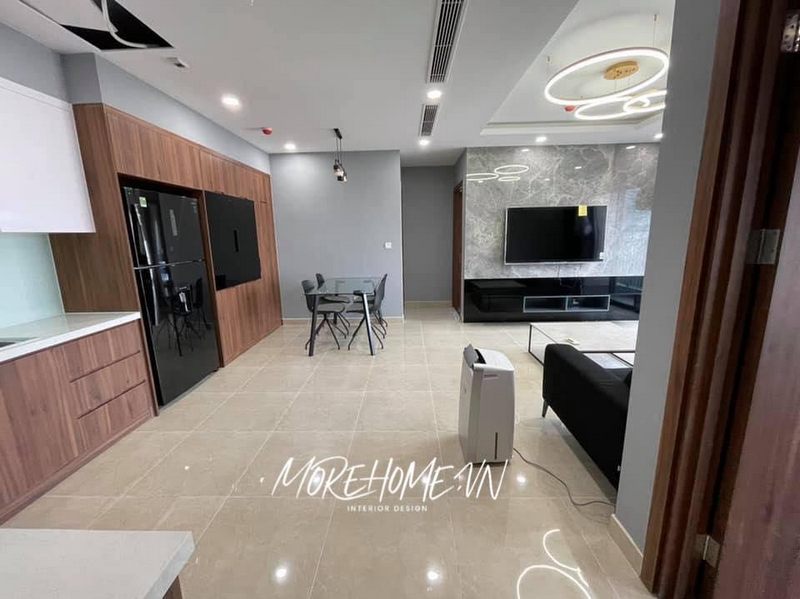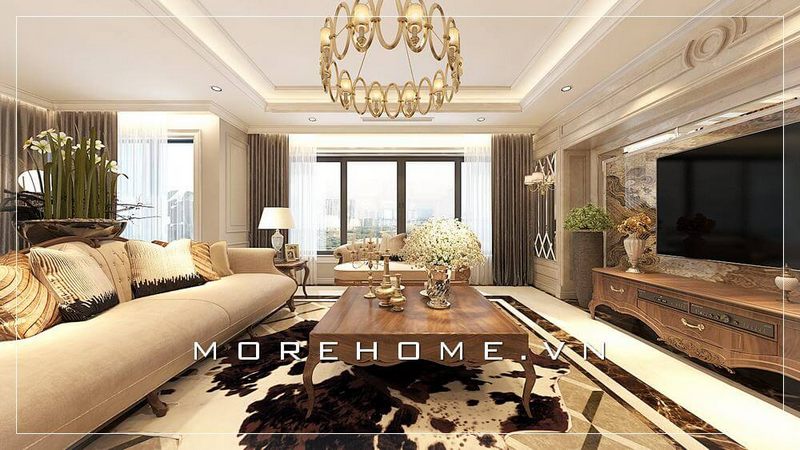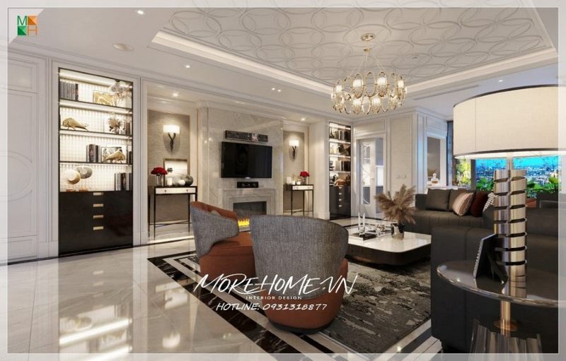 Do thiết kế cao cấp của các kiến trúc sư Morehome, các mặt tường đá viền mây đã được tạo ra, mang lại cho không gian phòng khách căn hộ mới mẻ hiện đại và tránh đi cảm giác nhàm chán.