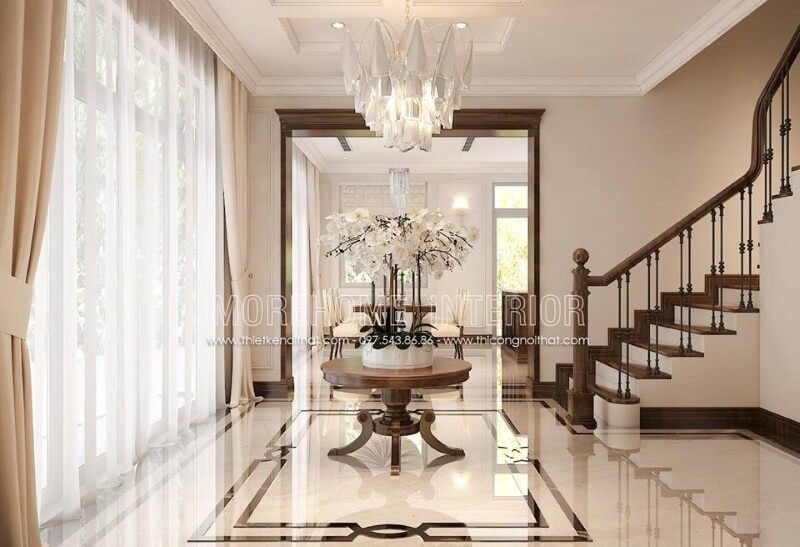 Gợi ý mẫu thiết kế lối đi hành lang rất hiện đại và cách bố trí nội thất rất ấn tượng và sang trọng.