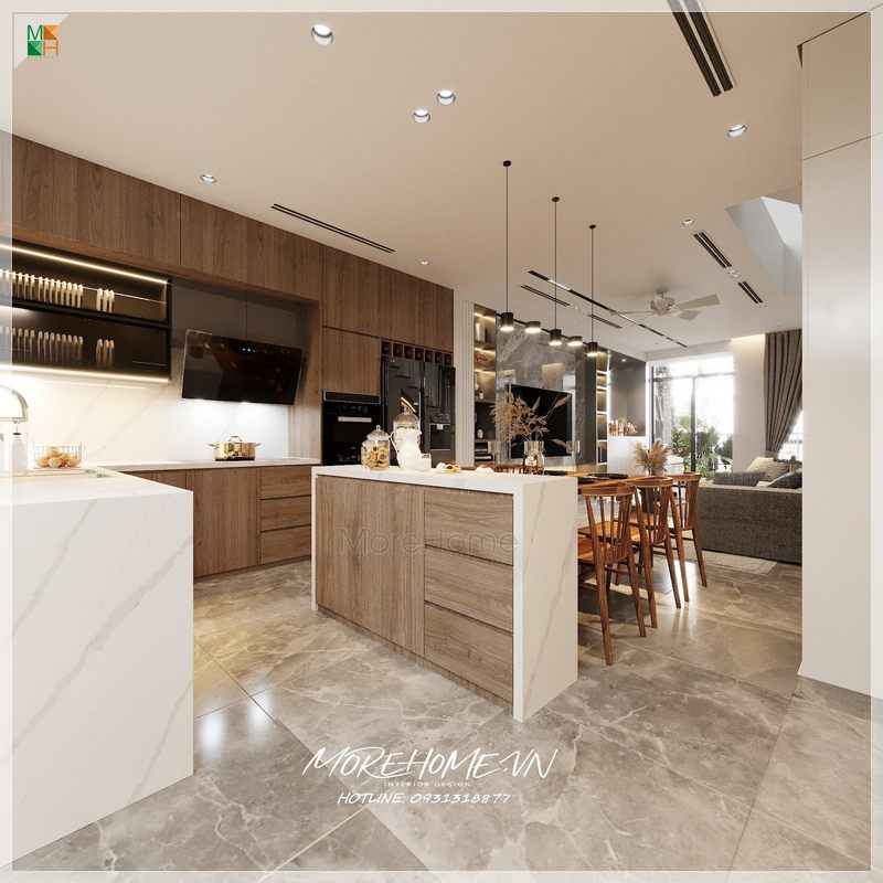 Thiết kế phòng bếp cho biệt thự mang phong cách hiện đại đang là xu hướng của năm nay. Có thể nói phòng bếp là không gian ấm cúng, giữ lửa hạnh phúc cho gia đình.