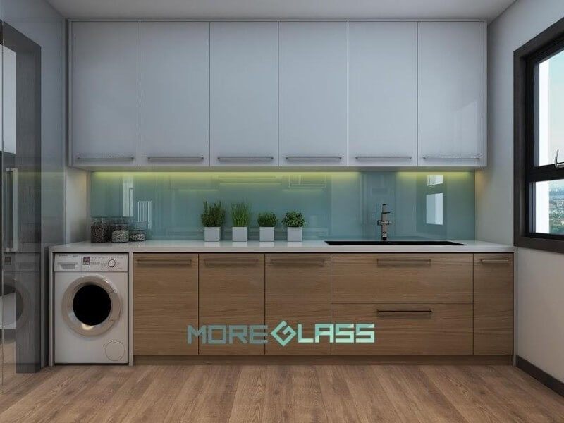 Mẫu kính ốp bếp màu xanh lơ MG-019 mang đến nét đẹp tinh tế cho không gian phòng bếp.