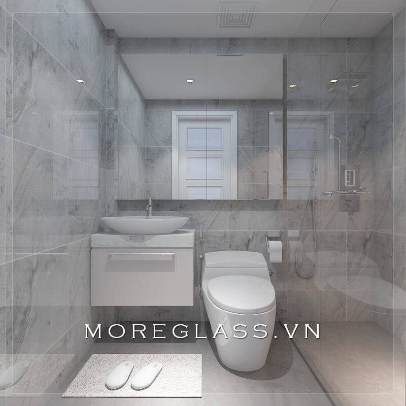 Cuốn hút trước vẻ đẹp đơn giản, hiện đại của mẫu thiết kế phòng vệ sinh nhỏ ngọn, tiện nghi với tông màu trắng xám tinh tế này.