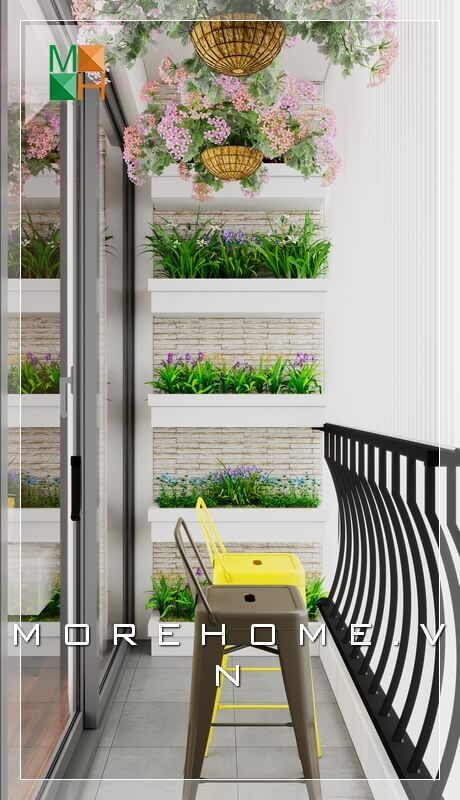 Trang trí ban công độc đáo với mẫu 2 ghế ngồi ban công đến các chậu hoa lung linh biến không gian ban công xanh mát trở nên lý tưởng và thư giãn.